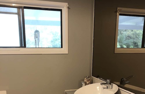 Totally private extremely quiet with sea breezes. Blacked out curtains for sleeping in. Huge back porch and 4 metre dinning table with bbq. Parking for 4 cars off the street. Walk to the river with a little beach and free BBQs.