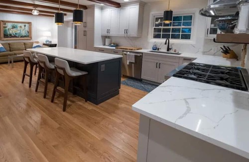 Unwind at this unique, tranquil getaway. Beautiful 1+ acre lot for privacy, yet so close to downtown Carrboro, Chapel Hill and UNC campus. 9 miles to Duke. Enjoy the new gourmet kitchen, gas fireplaces and outdoor fire pit. Several great gathering spaces both inside and out. Attention foodies: enjoy cooking in the well stocked kitchen or walk to the many restaurants. Note: there is an outdoor-only cat who roams the woods. Owner will feed him; you will see more deer than this cat.