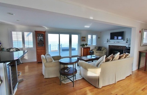 This is a lovely oceanfront vacation home with breathtaking views of Barnstable Harbor, Sandy Neck and Cape Cod Bay. This totally renovated perfect summer rental is steps away from your own private beach. Inside is a very spacious open great room on the first floor with sliders opening to a large comfortable deck with dining area and gas grill. Enjoy après beach cocktails on the deck at the end of a perfect summer day while the sun sets over the harbor. Or stroll to nearby shops and restaurants in Barnstable Village. Sat to Sat.