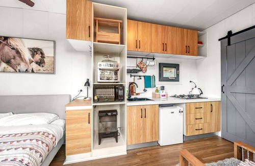 Note that if booked on its own, the other Tiny Home may also be booked by another guest. they are private from each other but share the outlook to the dam. Each Tiny Home is fitted out independently. The price of Redbird includes linen and towels.