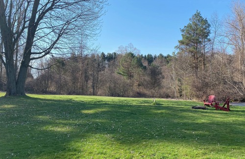 There are three bedrooms that will comfortably sleep 6 guests, a full kitchen to prepare meals, hi speed internet for streaming on rainy or lazy days. Plenty of outdoor space to take advantage, private beach close by, enjoy a fire with family and friends, great restaurants a stones throw away, Friday night concerts downtown Lexington all summer long.