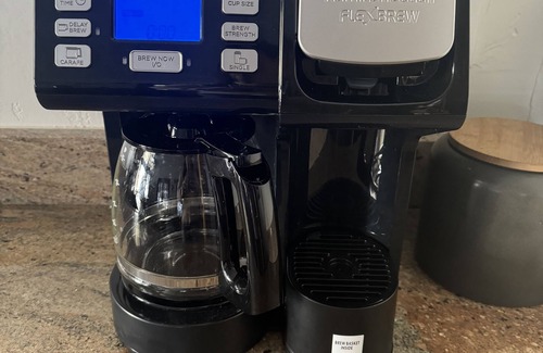 A fully equipped kitchen complete with utensils, dishes, glasses and appliances including a refrigerator, stove/oven, microwave, dishwasher, blender, crockpot, air fryer, hand mixer, baking pans, basic spices, toaster, etc. Grill on the main level deck is available to use during your stay.