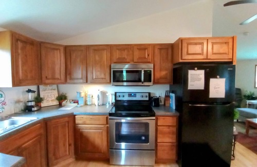 Raven House is located one mile from the entrance to Glacier National Park, 1 block South of Glacier View golf course and a half mile from river and fishing access. Raven House is a 768 square foot UPSTAIRS apartment with an open floor plan, 1 bedroom with a Queen Size bed, walk out deck from living room, finished bathroom and kitchen that sits within a half-acre fenced in rustic yard. Yard includes a fire pit. There are 2 patios. One upstairs and one downstairs. We have Starlink internet, a whole house water filtration system and an on demand backup generator in case the power goes out during your stay. There are plenty of activities to do in West Glacier Village such as mini golf, shopping, rafting, restaurants and walking trails. Glacier National park works on a reservation system. Please visit NPR.gov for further information.
