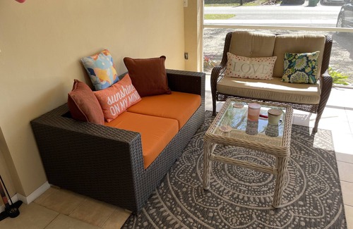 Offering you a quiet retreat after all your adventures at the beach and exploring Naples by land or sea. The contactless, keyless self check in works with Wifi door locks and a 4 digit code provided after booking. It is ideal for two people. If you are budget minded you can pull out the sleep sofa, inflate the air mattress with the electric pump and sleep 4. (Spare sheets and pillows are provided) The main Queen Bed has a comfortable new mattress. A 65" Roku TV with added digital antenna gives you literally hundreds of local channels for entertainment. A Google Nest Mini Speaker with basic instructions is there for your convenience. The kitchenette features a small Microwave and Refrigerator, a movable Hotplate with two burners, a Keurig Coffee maker, Farberware hot water heater for tea and all the utensils, plates, drinking glasses that one might need. The space is cozy and makes you feel at home and relaxed right away. The same house rents a 2 bedroom next door which is separate from your Studio with no shared spaces, except for the front yard parking. It is offered for rent in case there are larger families or travelers with friends who want to have their private space.