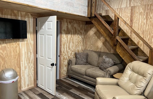 This tiny home is perfect for those just passing through needing to sleep for the night or guests looking to get away for a few nights. Discover the gorgeous landscape that surrounds this place to stay in the country located directly off of Highway 287! This tiny unit sleep up to 4 guests with 1 sofa bed and 1 full queen bed in the loft area. You cannot stand all the way up in the loft are. So it is equivalent to glamping! This home has a w/d, full bathroom with shower, and a kitchen with full size appliances and all cooking utensils. This home sets alongside 6 other cabins and a large farmhouse in the front for guests.