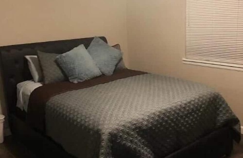 The kitchen is fully equipped with pots, pans, dishes and any other cooking utensils needed to complete the package. There is also a coffee pot, ironing boards, iron and plenty of cozy blankets to cozy on up. One more thing- did we mention the pool?! We have a swimming pool in the backyard with privacy that includes a grill and gas fire pit (upon request)