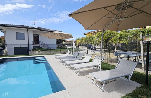 Villa Harmony is located in Colà di Lazise, a quiet hamlet immersed in greenery, of the well-known tourist resort on the shores of Lake Garda. The Garda Thermal Park is only 1 km away, the beach is about 2.7 km away and the centre of Lazise is about 5 km away. The 120 sq m villa has recently been renovated and can comfortably accommodate up to 8 people. It is located on the raised ground floor and has 2 large and bright double bedrooms, 1 room with two single beds that can be pushed together, 2 full bathrooms with showers, a washing machine; air conditioning and wifi are available for guests. The house also has a fourth room with a sofa bed and TV that can accommodate one adult or two children. The bright living area opens onto a furnished balcony with a table and chairs. The kitchen is fully equipped with crockery, fridge, freezer, gas hob, oven and dishwasher. Guests can cool off in the brand new private pool (open from 15 April to 15 October) or relax in the big garden. A shaded dining area has been set up near the pool.A covered parking space is available for guests. In the neighborhood you will find a bakery, a smal supermarket and some restaurants/pizzeria. Non-smoking house. Pets allowed with a supplement.The final price consists of:- RENTAL FEE paid directly to the owner, on whose behalf Regarda acts- GUEST SERVICES (check-in, check-out, sheets, towels, courtesy line, on-site assistance, professional cleaning, booking management, commission paid by the host to the portal, correspondence, etc.) offered by Regarda Travel to the tenant.Mandatory tourist tax to be paid in cash upon arrival.Mandatory security deposit of €500.00 to be paid by credit card upon arrival.Regarda Travel is a property management agency located in Lazise, on Lake Garda, with years of experience in the tourism sector and hospitality. We manage with the satisfaction of our guests over 80 houses, villas and apartments. We know and live in the area, so we can proudly point out the best experiences to be had in this renowned area of northern Italy.We can advise you on the best guided tours to visit the beauties of Lake Garda, Verona, Milan, Valpolicella, Venice and Mantua, boat tours, bike tours, food and wine trails... and much more! We are also at your disposal for booking Opera tickets at the Arena di Verona, rental cars, private transfers, discounted tickets for the main thermal parks and amusement parks such as Gardaland, Caneva, or Movieland.
