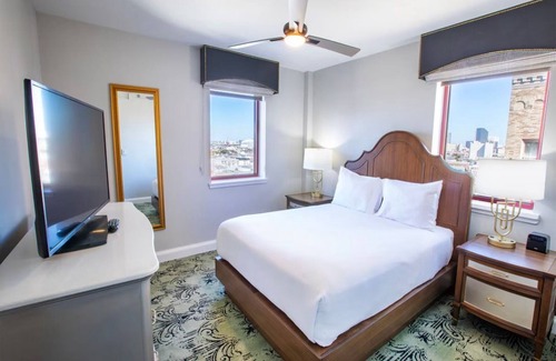 This charming resort in New Orleans is perfect for your escape from the vibrant city. This cozy 1-Bedroom Suite features a queen bed, a lovely living room with a sofa bed and a kitchen so that guests will feel right at home.