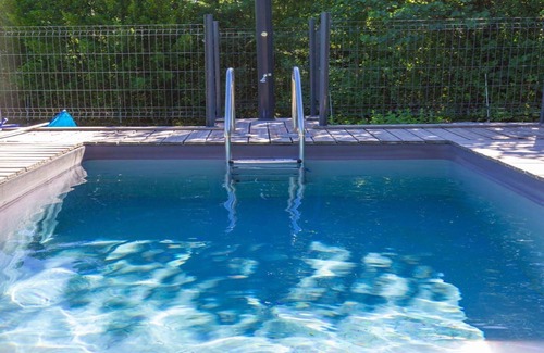 Layout: On the 2nd floor: (hall, open kitchen(bar(eating bar), electric kettle, cooker, hood, coffee machine(cups), oven, combination microwave, dishwasher, fridge-freezer), Living/diningroom(TV(flatscreen, digital), dining table, seating area, air conditioning), bedroom(double bed, air conditioning), bedroom(double bed, air conditioning), bathroom(shower(walk-in shower), washbasin, toilet), tumble dryer, washing machine, balcony) terrace, garden, garden furniture, sun loungers, parking, swimming pool(shared with other guests, outside, fenced), boules court(shared with other guests)