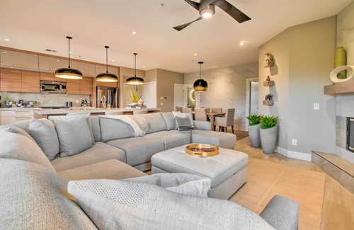A luxury oasis awaits you at ‘LUXE del SOL Resort Casita,’ a vacation rental in Scottsdale! Located in Mirage Crossing Resort Casitas, this 2-bedroom, 2-bathroom condo boasts a designer interior, an exquisite kitchen, and high-end finishes. Not only that, but the property also features access to community amenities — including a pool, a well-appointed clubhouse, a fitness center, and more. Be sure to visit nearby attractions like Talking Stick Resort and Old Town Scottsdale to top off your stay.