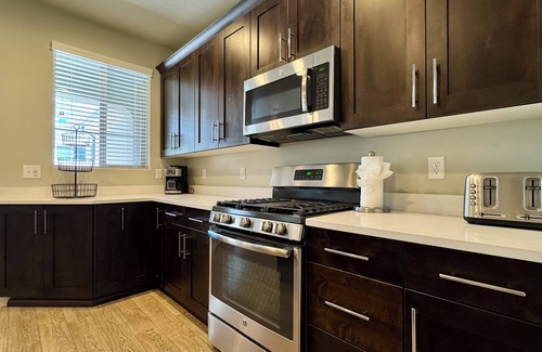 The fully stocked kitchen includes top-tier appliances and everything you need to cook and dine together. You'll find seating at the dining table and breakfast bar. After a full day of adventuring in beautiful Southern Utah, come home and relax in comfort.
