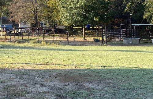 1 bed 2 TV, inclusive kitchen- table, chairs in living area, has spaces for horses, 1 shower, wash and dryer stack, small animals $30 are welcome, gated security, round pen for horses and lots of open areas for horse back riding.. Lots of trees, access to swimming pool and hot tub, $50 for each horse... Travelers will have to get own hay and feed..covered shelter for animals. If you have any questions or concerns please just reach out to us. We want your experience to be great and if you need help with accommodations just let us know. We are here to give you a wonderful and peaceful experience.
