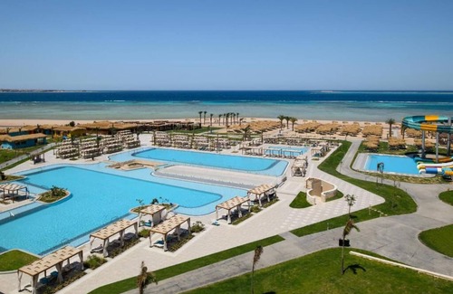 A stylish beachfront escape with a private reef, swim-up rooms, multiple pools, kids’ aqua park, spa, and global dining. Enjoy live entertainment, beach sports, and water activities, with Mini Egypt Park, Makadi Bay Beach, and Sahl Hasheesh Old Town just minutes away.
