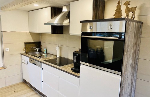 Just 400 m from Güntersberge’s center and 500 m from lakeside adventures, this ground-floor haven offers comfort and charm for couples, small families, or solo travelers with pets. The open kitchen is equipped with electric cooktop, oven, microwave, fridge-freezer, dishwasher, toaster, and a fully automatic coffee machine—ideal for relaxed self-catering. A pellet stove warms the cozy living/dining room, which includes a flatscreen satellite TV with Dutch channels and a double sofa bed for added sleeping flexibility.