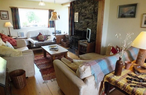 Amenities: Oil central heating. Electric range cooker, microwave, fridge/freezer, washing machine, dishwasher, TV, DVD, WiFi, telephone provided on honesty basis, selection of books and games. Fuel and power inc. in rent. Electric Vehicles: This property does not have a charge point for electric vehicles and charging from within the property is prohibited. Bed linen inc. in rent. Towels NOT provided, please bring your own, including beach towels. Cot and highchair available on request. Please bring your own cot linen. Roadside parking for two cars (when parking, please leave a space in front of the neighbouring cottage). Private and enclosed garden with pond and wooden bridge, rope swing, seating areas and garden furniture available in shed. The garden has a pond with small footbridge so children and pet will need supervision at all times. One well behaved dog welcome (additional charge applies) Pet must sleep downstairs. Sorry, no smoking. Shop and pub 1 mile, coast 1.5 miles