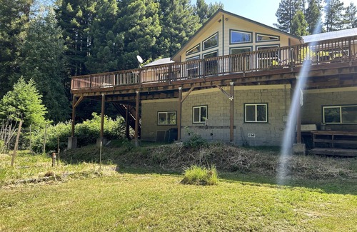 Enjoy the Eel River with private access and views, nestled in the Redwoods of Humboldt County. You and your family can enjoy hiking, swimming, canoeing, or just relaxing in this Humboldt haven, fifteen minutes from highway 101, and the town of Miranda which offers restaurants, shopping, coffee shops and fuel. This is the downstairs apartment of a two unit building, the apt is below the upstairs apt and deck, with a shared parking area and outdoor spaces. There may be other guests or residents in the upstairs apartment during your stay. For river access, pass the cabin in the yard to the left of it, and you will find a trail going down to the river with a sitting area and boats. Summer and fall are the best times to enjoy the river, but it can be dangerous in the winter when the rains come and it gets high
