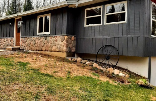 Our Chippewa River retreat will offer a tranquil escape where hunting, fishing, 4 wheeling and swimming are a stones throw away! Our newly renovated cabin is tucked amongst the beauty of the north woods away from the hustle and bustle of everyday life. Escape to excellent river views while sipping coffee and watching wild life from the master walk out patio. Relax in the living room offering rustic beauty and a warm glow from the fireplace. Foyer entry offers, laundry and sitting bench for easy removal of clothing after a long day of outdoor fun.