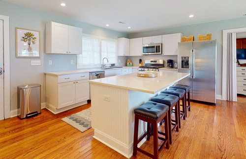 Outside, enjoy sitting on the patio with a drink in hand while you soak up some rays, watch an array of coastal birds, or stargaze. The large yard gives ample space for games, and come evening time, spark up the firepit for some quality togetherness and s'mores. Watch the sun rise above the river and marsh while you cook breakfast on the Blackstone grill and griddle.