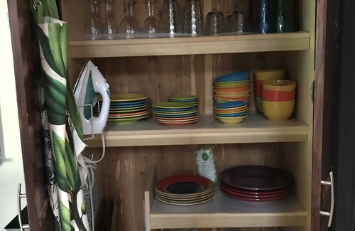 The 2 bedroom, 1 bath house (+ outdoor shower) has an open concept design, a newly remodeled kitchen with stainless steel appliances, and all the utensils you'll need to cook the perfect meal. The dining bar comfortably sits 6 people, there is extra seating around the counter bar in the kitchen, and a dining room table as well. The living room boasts leather reclining couches, a 55' Smart TV with Xfinity, DVD player, and surround sound, as well as a wii with games, and plenty of board games. The house has wifi.