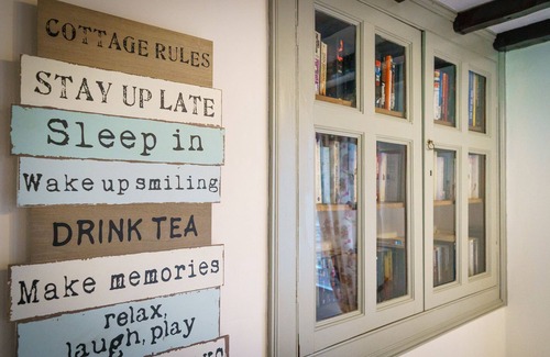 As you enter the cottage into the living room via the grand stone-built porch, you'll notice that many of the original features have been thoughtfully retained, including the original slate floor, wooden beams and the window seat with a view of Caw Fell. The large log-burning fire and comfy sofas make the living room a wonderfully relaxing space to enjoy after exploring the Lake District or perhaps just stopping in for the day. There are over 200 books to choose from and a selection of games and DVDs available.