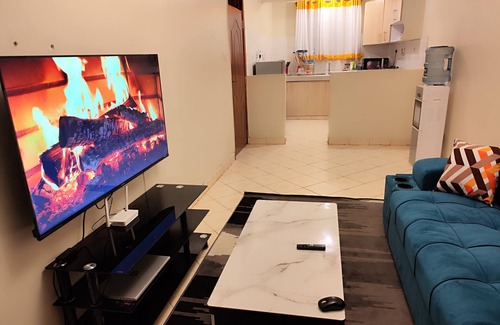 Indulge in a one-of-a-kind experience at our stylish, well lit, spacious self-catering 1-bedroom apartment nestled in the vibrant center of Kinoo, Rungiri, off the famous Nairobi- Nakuru Highway. Our guests get to enjoy a relaxing break in this elegantly manicured apartment, a sanctuary of comfort and style, located just on the first floor equipped with high-speed Wi-Fi, Netflix on a 55” Smart Tv, state of the art fully fitted kitchen including; an oven, microwave, fridge/ freezer and a water dispenser not to mention the comfy couch.