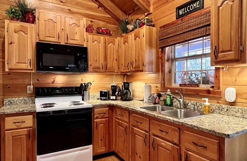 One of the nicest things about Water's Edge is the ease of access. You're 4.5 miles from the heart of Pigeon Forge at Traffic Light 3--only a few minutes away. But with no steep mountain roads to climb, winter time access is very good. Plus if stairs are a concern, the cabin has a simple ramp that leads inside and all living is on one level. (Note: while Water's Edge has easy accessibility, there is a slightly raised threshold at the entry door and the shower floor has raised edge to keep water in the shower base.)