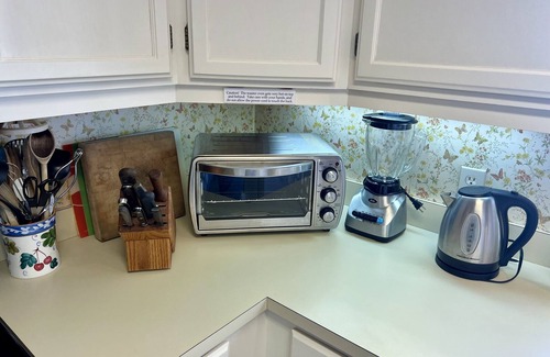 Full kitchen includes: dishwasher, coffee maker and grinder, blender, microwave, toaster, toaster oven. Original home remodeled in '85 with several recent updates.