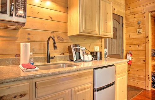 Your kitchen is home to a collegiate-sized refrigerator with a freezer and a 2-burner stovetop. There are ample pots and pans if you feel like making your favorite vacation meal, or a microwave oven for heating up the leftovers from one of our amazing restaurants in town. A toaster and drip coffee maker round out the appliances which are at your disposal. The Amish-made wood table and chairs are the perfect spots for breakfast for two.