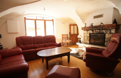 -A vaulted living room of 26 m² with a large south facing bay window, 1 tufa stone fireplace (wood is provided), 2 sofa + 2 armchairs, 1 coffee table, 1 40 "HD TV with USB and HDMI connection, Home Cinema.