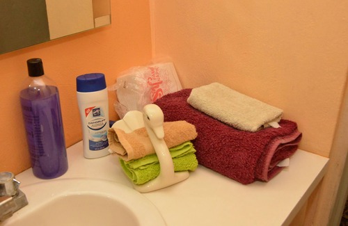 This is not a self contained facility but a townhouse with a single entrance in which 1 single rooms with double beds air conditioning, fan, TV with Netflix account, walk-in closet .These rooms are located upstairs on the second floor with a fully stacked kitchen with stove,fridge, and utensils .Bathroom is shared between occupants of both rooms.Hot water is piped throughout home. These facilities are best suited for the European plan vacationers who will be on the go during the day.