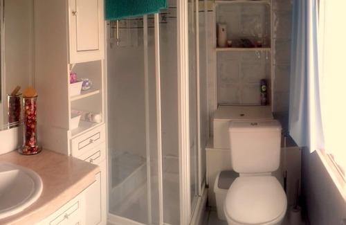 Shower room with toilet and washbasin
