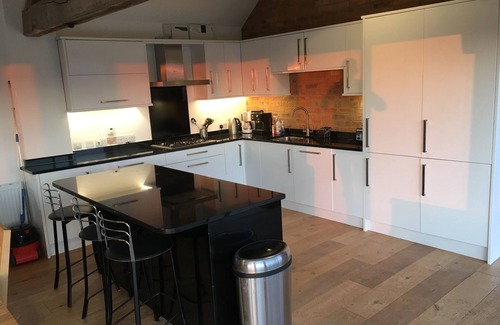 Red Brick Barn is a completely rural retreat with unparalleled views. The barn has recently been converted to a very high standard and sleeps up to six people. There are two double bedrooms, both with en-suite bath/shower rooms and a sofa bed in the living area. The spectacular main room has a large well-equipped kitchen with an island and three bar stools; a dining table with ten chairs and a large L-shaped sofa. There is also a woodburning stove and TV.