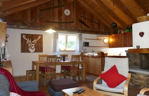 "Rustico Ingrid", 2-room house 55 m2 on 2 levels. Partly with sloping ceilings, rustic and cosy furnishings: open living/dining room with open-hearth fireplace, dining table, satellite TV, radio, hi-fi system and wood-burning stove. Exit to the patio. 1 room with 1 double bed (2 x 90 cm, length 200 cm). Open kitchen (4 hot plates, Gas stove, microwave). Shower/WC. Wood heating. Solar power. Upper floor: (steep stair) open gallery, ceiling height 80 - 140 cm with 1 double bed (1 x 160 cm, length 200 cm). Patio. Terrace furniture, barbecue (portable), sitting area. Beautiful view of the countryside. Facilities: children's high chair, baby cot for up to 2 year olds (extra). Internet (WiFi). Please note: non-smoking house. 1 pet/ dog allowed. Instead of an enclosed bedroom, some sleeping areas are located in an open-plan area (gallery, alcove, etc.). NL-00003936