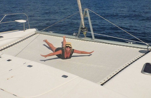 La Vie, is the perfect sized catamaran for a family or 2 couples or the perfect Honeymoon, she is not a huge superyacht but she is very roomy (and no head bumping or toes hanging over beds...)she is like new and much larger than a mono hull (a single hull boat). La Vie is very well equipped her Average Cruising speed is 8 knots, has 2x256 hp Yamar Diesel, AIS (a saftey device to see other boats -automatic identification system), Raymarine Chart Plotters (these help us plan where to go and are like a map), Generator (supplies the power)& plenty more electronics. The crew are happy to teach or show you all aspects of using the boat. On deck, a sailing vessel can be a bit like an obstacle course, with winches, lines, and other fun things to trip over so you need to be quite nimble and prepared for a few bumps here and there.