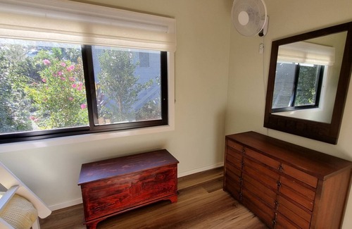 Reverse cycle air conditioning in the living room will keep you cool in summer and warm in winter. There is a cute bathroom with shower and under the house is a washing machine and dryer for your convenience. The house has free wifi and blue tooth speaker for those summer tunes! There is a second fridge and also Kayaks which you are welcome to use.