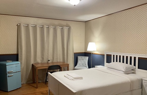 it equipped with a queen size bed, a desk can be used for writing and learning, and also comes with a closet and a mini fridge, free WiFi and a private parking area. Everything is ready to start your excellent trip!
