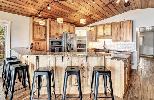 Sleeping accommodations for 16. Property features 3 full bedrooms and 3.5 bathrooms total. Kitchen has custom cabinets outfitted for all food preparation and cooking needs. Walk out patio from kitchen and you'll immediately be greeted by a large 900 sq ft Trex Deck. You'll have one of the best views on the Lake of the sunset every night.