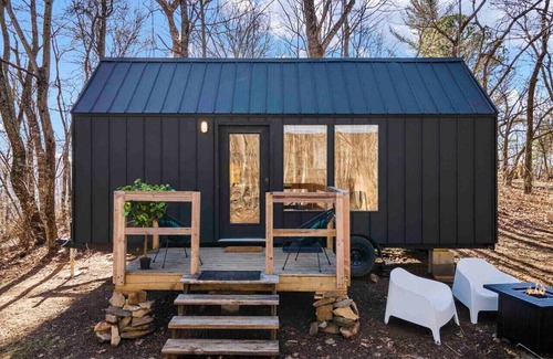 This stunning tiny house is just 20 minutes from Asheville. The Japandi interior, a blend of Japanese and Scandinavian design, offers a clean, cozy feel. Enjoy luxurious tiny living on a ridge with beautiful views and peaceful surroundings. It’s the perfect place to relax and reconnect with nature.
