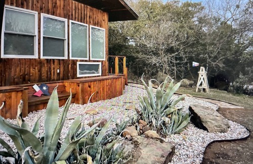 Situated at the foot of a boulder covered ridge in Palo Pinto County, The Hideout at Rocky Ridge Studio offers a quiet, scenic getaway, just one hour west of Fort Worth. Write, paint, read, relax and explore the juniper and boulder covered hillside. Hike the trail down to the scenic Brazos de Dios or explore the hilly ranch roads. This 480 square-foot cabin is artfully decorated, simple, and peaceful. You will find nothing fancy but everything you need for recharging and restoring a busy soul. Seven miles from the historic town of Mineral Wells, the Crazy Water and Baker Hotels and close to the new Palo Pinto Mountains State Park.