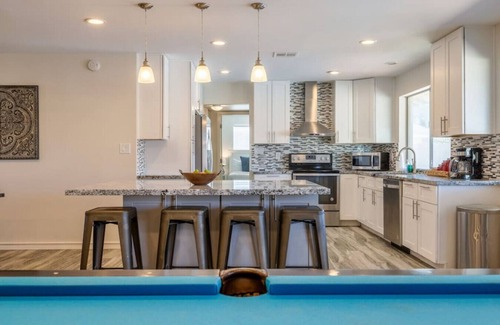 Indulge in elegance and fun at our private retreat in the heart of Old Town Scottsdale. This exquisite home boasts a newly finished open-concept living area, seamlessly uniting the kitchen, dining, and living rooms, complete with a pool table for added entertainment. The modern design throughout adds a touch of sophistication to every corner.