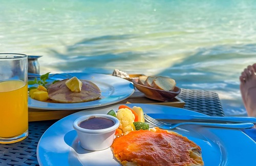 Infront you will find our beach services and our restaurant with specially from Mexico and Italy