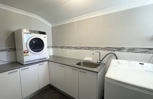 Both large bedrooms have comfortable queen-sized beds, perfect for families or friends travelling together. The living area is spacious and inviting, with a fully equipped kitchen and comfortable lounge for you to unwind after a day of exploring. Enjoy your morning coffee or a glass of wine on the private patio.