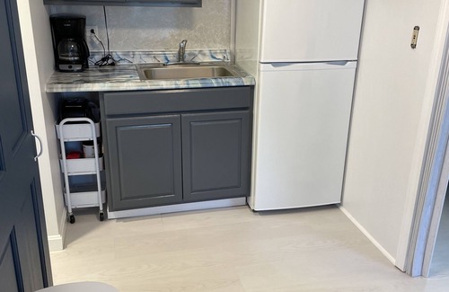 This is a cozy 2 bedroom unit with a kitchen that has a full size refrigerator, sink, hot plate to cook, with dishes and pots and pans for eating at home! Bed configuration is 3 full-sized beds. This unit is designed to sleep 6 people including children. We kindly ask that you honor our maximum capacity for sleeping. There is a kitchenette that has full-sized refrigerator, coffeemaker, toaster and hot plate as well as dishes, pots and pans. Really- everything you need to have for a great vacation! All units have a screened porch with chairs to relax on and your own private propane fire pit in front of your cottage! We have an above ground pool, and gazebos to eat family dinners in! We also have a firepit if you want to build a fire and cook marshmallows! The walk to the pier and beach is about 3-5 minutes. That is where you will find all the action, late night bars, shops, restaurants, candy stores, ice cream, fried dough, arcade and rides! Everything to have a great stay without having to drive to get to anything.