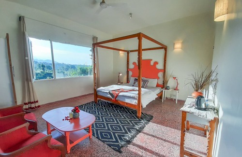This spacious 240 sq ft room opens to the common lounge and a dining room. It comes equipped with a four-poster king size bed, TV, an en suite bathroom. It can accommodate one extra mattress (additional cost) as well. The view from the glass window makes it dreamy, It is the definition of the kind of dream a person has when it comes to being secluded in a place surrounded by nature with the ones you love.
