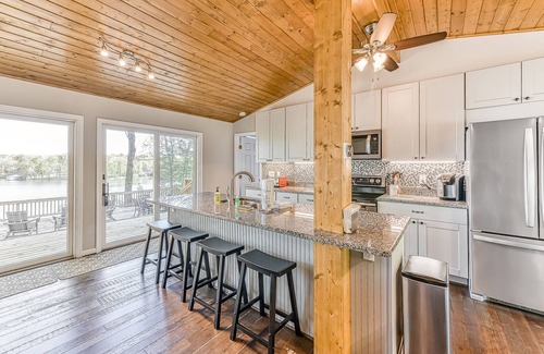 Find yourself tucked amongst the beauty of Central Virginia and make yourself at home at this lakefront gem. As soon as you step foot inside, you will be greeted by rustic touches of raw wood on the tall ceilings, plenty of natural light filling the entire space, and an open layout that will allow everyone to mingle and spread out. Step out to the expansive back deck and you will find stunning views of the lake and surrounding foliage, a gas grill to enjoy cookouts in the fresh air, and plenty of seating for dining al fresco! Walk down the wooded path to the shore of the lake and sit on the private dock while you soak your feet in the cool waters of Lake Anna. Inside, the chef of the group will fall in love with the fully equipped kitchen boasting beautiful countertops, a fun backsplash, breakfast bar seating for reminiscing while prepping ingredients, and all of the utensils needed for any recipe. Plus, the living room and dining area will be ideal for gathering together for movie nights or formal meals!