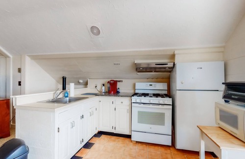 All set up in the same building as Cabot's Candy Store, this two-level condo is sure to be a hit with guests who want to explore Provincetown! Enjoy a view of the ocean and local landmarks from the homey full kitchen, complete with two tables so you can enjoy an intimate breakfast or a family dinner. Numerous skylights (including one right above the bed in the main bedroom) will satisfy natural light fans. Relax in the living room upstairs or the downstairs lounge - or head up to the rooftop patio and breathe in the fresh bay area.