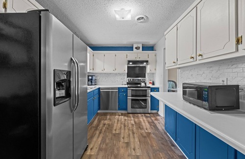 As you step inside, you'll find a fully equipped kitchen, perfect for preparing delicious meals for your family or group. The spacious dining room is adorned with ample seating, providing a warm atmosphere for shared meals and quality time together. The king-size bed in the master bedroom ensures a restful night's sleep, while additional sleeping arrangements include a queen bed, trundle twin beds, and comfortable accommodations for everyone.