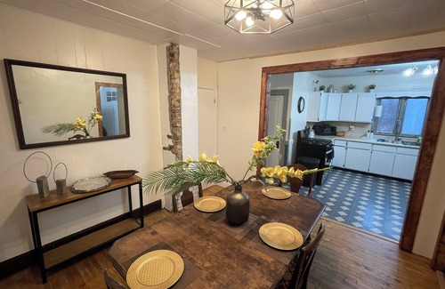 Discover the beauty and nature of Crystal Falls from this charming 3-bedroom farmhouse. With 1 king bed and 2 queen beds, guests will find this nature inspired property cozy and inviting while offering all of the conveniences you need for your stay. You can relax and recharge in this 105 yr old home full of character like distressed finishes and weathered wood that bring a sense of lived-in comfort to your stay.