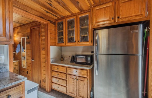 Back at the cabin, you'll find a fully stocked kitchen, complete with a stove, oven, refrigerator, grill, and all the necessary appliances and utensils to whip up delicious meals. Unwind in the living room, or step outside and gather around the fire pit for a cozy evening under the stars. With games, a DVD player, and a selection of books, there's something for everyone to enjoy.