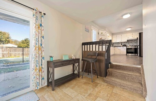 The full upstairs bathroom includes a modern vessel sink and a long wall-length mirror, making it easy to get ready for the day or wind down at night. Just off the front entrance to the right, you’ll also find a convenient half bathroom for guests to use throughout the day.